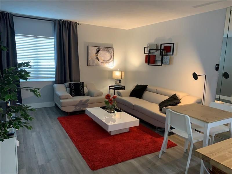 BEAUTIFULLY renovated 1 bed/ 1 bath condo located on the first floor. Impact windows and doors, laminated floor in living room and tiles in the bathroom. Unit comes fully furnished and equipped with 2 queen size beds. Secured lobby with key access. Amenities include pool, bbq area. One dedicated parking space. Building is Airbnb friendly with immediate rentals allowed and no approval needed. New 2023 roof, 40 year inspection successfully completed and funded reserves. Conveniently located near I-95 and short drive to the beach, Pompano Pier, Bars and Restaurants.