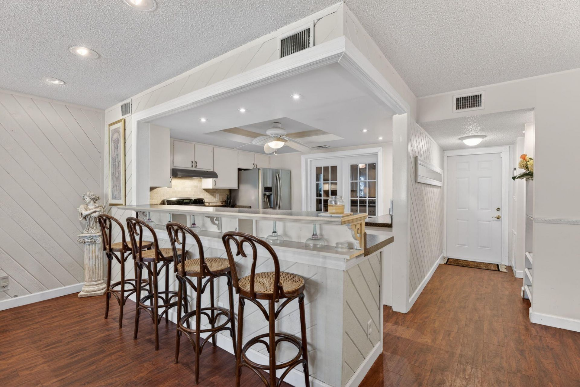 Move-in ready, fully furnished 2BR/2BA villa on a quiet street with no neighbors above. Spacious layout with large kitchen featuring stainless steel appliances, dedicated dining area and in-unit washer/dryer. Enjoy dual outdoor spaces: a private fenced front courtyard and an extended back patio, perfect for relaxing or grilling. Rent includes water, internet and alarm system. Pet friendly up to 25 lbs. Accordion shutters throughout. Community amenities include pool, tennis/pickleball courts and clubhouse. One parking spot, garage not included. Conveniently located near shopping, dining, beaches, and I-95. Renter's insurance required.