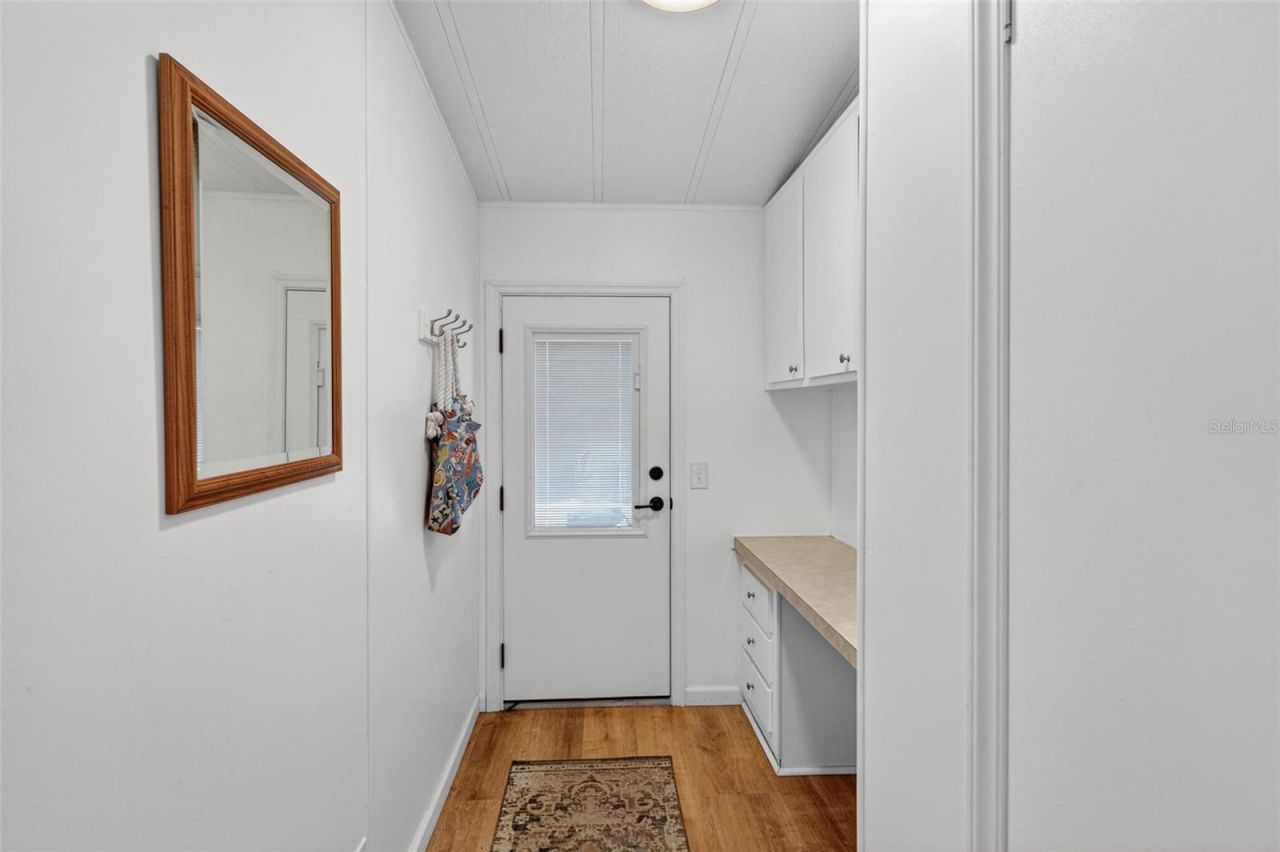 Welcome to this sunlit and welcoming two-bedroom, two-bath retreat nestled on a peaceful street in La Casa. Step inside to discover a thoughtfully designed built-in desk area and a handy utility closet by the entry. The kitchen, complete with a breakfast bar and modern appliances, flows seamlessly into a spacious dining and living area. Enjoy meals in the dining space with its charming built-in hutch, or relax in the living room that opens through a newer sliding door to a tiled, screened lanai, perfect for morning coffee or evening breezes, with direct access to the carport. The guest bedroom features a generous walk-in closet with custom shelving, while the guest bath offers a stylish vanity and a tub/shower combination. The primary bedroom is a true sanctuary, boasting a storage closet, two double closets, and an en suite bathroom with a brand-new double-sink vanity and a convenient piggyback washer and dryer. The master bath includes a walk-in shower for added comfort. Throughout the home, you'll appreciate thoughtful upgrades like luxury laminate flooring over sturdy plywood subfloors, fresh baseboards and casings, new windows installed in 2022, an asphalt shingle roof installed in 2022, a 2021 water heater, a rebuilt A/C with new parts and motor installed in 2023, and updated electric and plumbing. The exterior showcases durable plywood sheeting, wrap, and vinyl siding. A long carport leads to a versatile utility room with extra storage and a workbench. This home has been well cared for, both inside and out. The Community of La Casa, where 974 stunning homes are elegantly nestled among a tapestry of native trees, offers a serene escape surrounded by spacious common areas and eight picturesque lakes. La Casa is perfectly situated between Sarasota and Fort Myers, and embodies the ultimate lifestyle on Florida's Gulf Coast-a true boaters paradise with access to the breathtaking Gulf of Mexico. Enjoy the convenience of nearby shopping, exciting sightseeing, world-class golfing, and abundant fishing and boating opportunities, all while indulging in the rich culture and refined elegance for which Southwest Florida is celebrated. As you immerse yourself in the warmth of Southwest Florida's winters, you'll find yourself in a relaxed and unhurried atmosphere, far removed from the hustle and bustle of the east coast. Our community is adorned with lush, mature landscaping that reflects the loving care both residents and management dedicate to preserving its beauty. Stay connected while basking in the sun with our complimentary wireless Internet (Wi-Fi), available at the Clubhouse, Activity Building, and Recreation Hall. Whether you're catching some rays or catching up on emails, La Casa has it all. Does this sound appealing? La Casa is not just a community; it's a welcoming family-friendly haven.